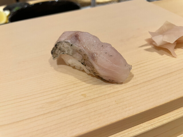 まずはスズキ。スズキの上にはゴマが乗っていて