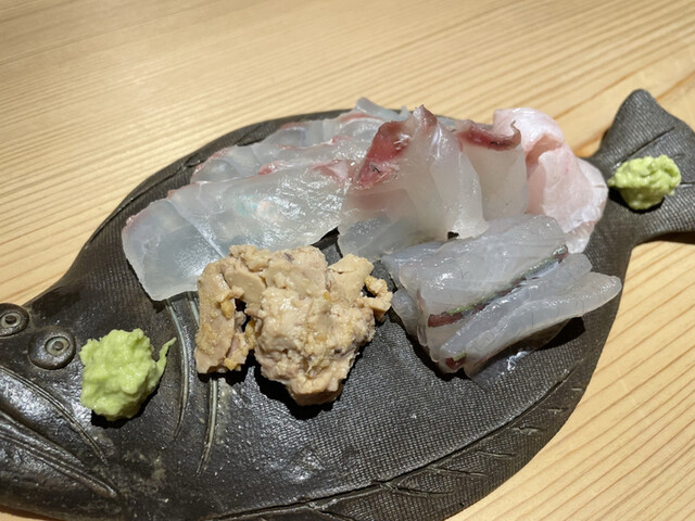 剣先烏賊、鱸、鰆炙り、バイ貝、若狭アジ。