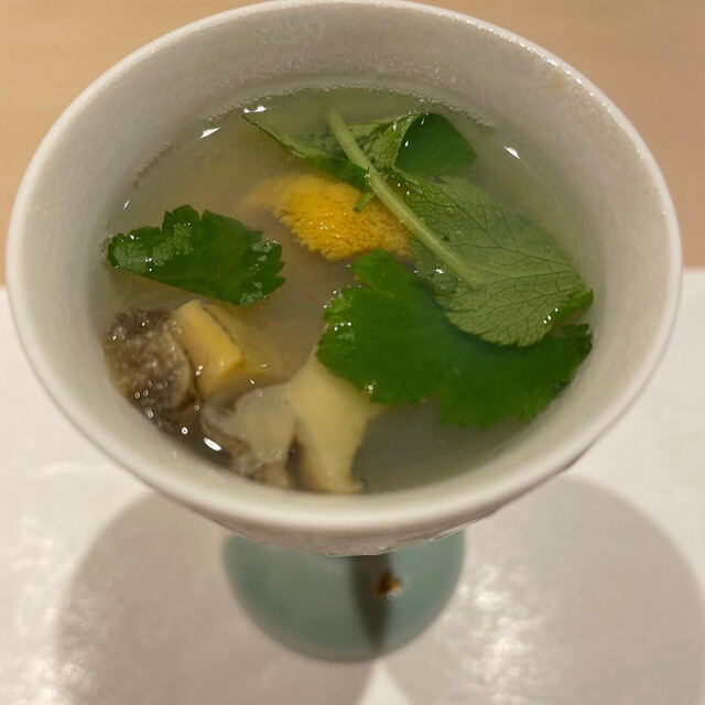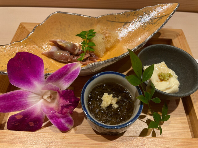 鮑は柔らかくて、うには濃厚な味が楽しめます。