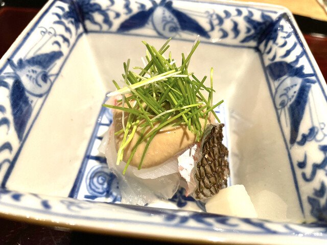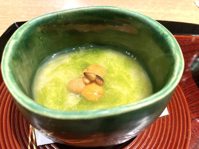 かいのたいらぎ、ふき、やつしろのりポン酢