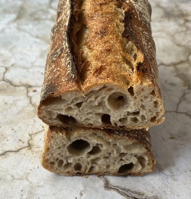 →皮はカリッザクっとしっかり焼き込まれています。クラムはむちむち〜!酸味は思ったほど強くなく、シンプルに深い旨みが感じられるフランスパンです。