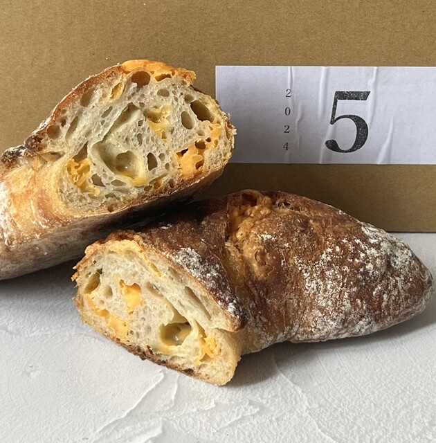 →見た目はがっちり焼かれているように見えるのですが意外と生地は柔らかく、噛めば噛むほど旨味が溢れてきます。タイムは葉のまま入っていて存在感があり、チーズの量は意外と控えめなのでしつこくなくて素敵。このバランス感と味わい深さは人舟さんにしか生み出せないと思います。