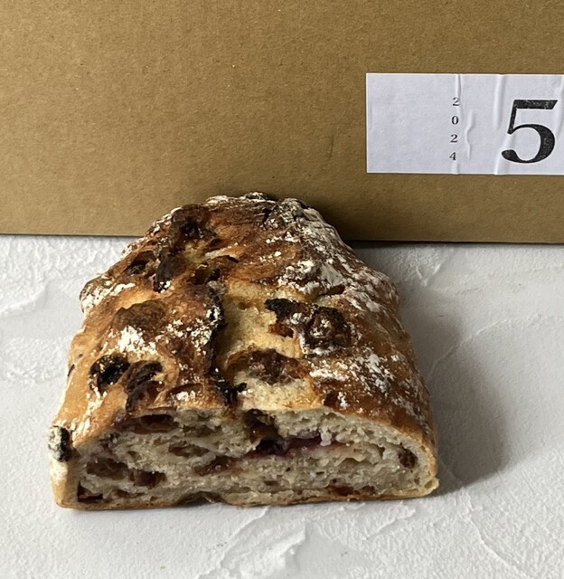 *ラベンダー酵母シュトレン/小麦、酵母、レーズン、クランベリー、あんず、パイン、バター、きび砂糖、ホワイトチョコレート、レモン、ヨーグルト、ココナツ