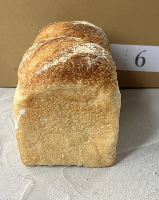 →通常との食パンの違いはバターが使われていてきび砂糖が入っていないところ。見た目はほぼ同じでこちらの方がやや肌色が白い。食べてみるとヒキが強くてもちもち度が半端ない!