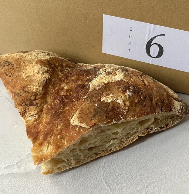 →オリーブオイルだけではない、酵母の良い香りが断面から漂ってきて、クラムのむっちりみっちりした食感にもうやみつき。フォカッチャは油っぽいイメージがありますが思っていた以上にあっさりしていて私好みでした。