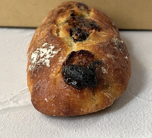 →外側はしっとり、内側もっちりな生地はがっつりカルダモンが香ってとてつもなく私好み。マロングラッセやいちじくの主張は強くなく、エキゾチックな風味との組み合わせは他では味わえない魅力が。また人舟さんをより好きになってしまいそう。