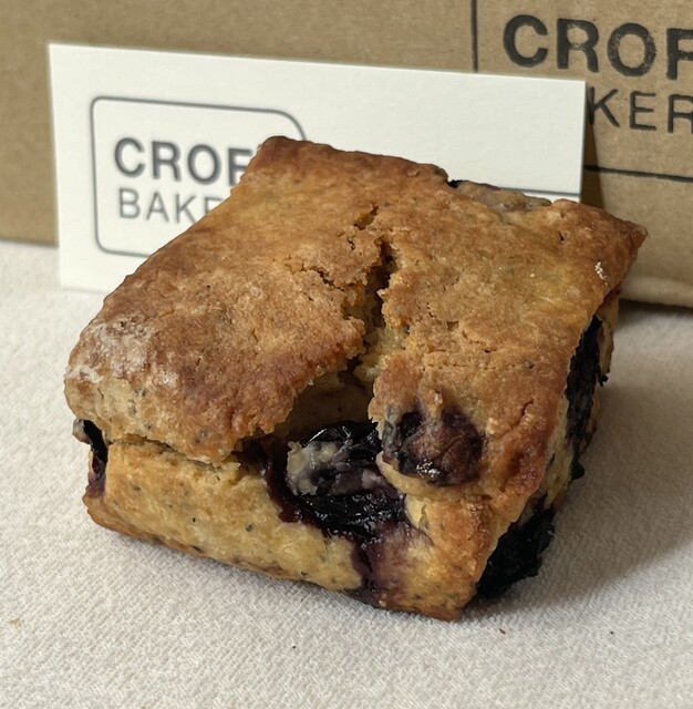 ブルーベリーは大粒で粒そのものが入っていてドライとは違ってみずみずしい。全粒粉の香ばしさとケシの実の粒々がしっかり感じられて食べるたびに楽しい。重くなくて美味しいです。