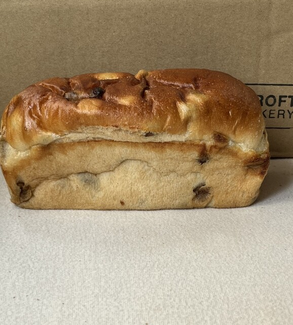 →とてつもなくしっとりしていて、内側はモチモチ。甘さがしつこくないレーズンと生地の調和が素晴らしい。そのままでも、トーストして食べてもおいしい‼︎