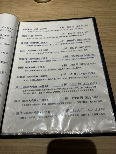 十四代(山形のプレミアム日本酒)が常にあってこの価格で飲めるお店はそうそう無い。