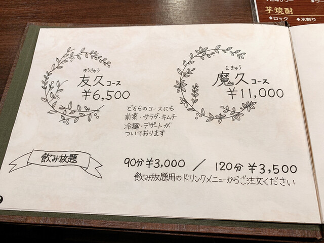 頼むのは一択!魔久(まきゅう)コースと飲み放題120分♪