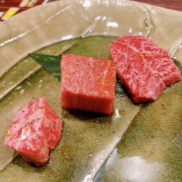 ・ハラミ(中央) ※甘くてシャキシャキ旨味ジュワーっと日本一旨いハラミでは?涙もの旨すぎ✨