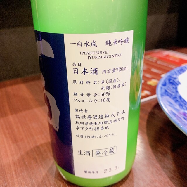 ・一白水城(いっぱくすいせい)純米吟醸 炭火焼肉久 別注 900円 ※キリッとドライかつ濃厚な米麹がスッキリと日本酒マッコリみたいで美味✨