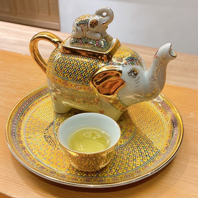 ・トムヤムクン 岩手松茸 きんき はまぐり 海老しんじょう(タイの海老と車海老とフカヒレ) ※きんきは皮パリふっくら♪とてつもなく美味しい絶品美味✨器は有田焼きで象が描かれていて可愛いかったです♪