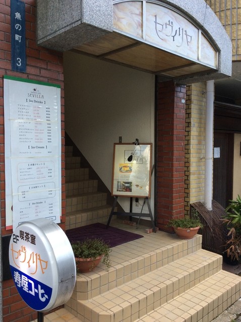まずはYouTubeチャンネルで最後に紹介してた松翁軒さんの二階にある喫茶店、セヴィリヤさんに。