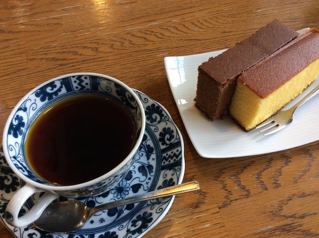 老舗カステラ屋さんでコーヒーとともに
