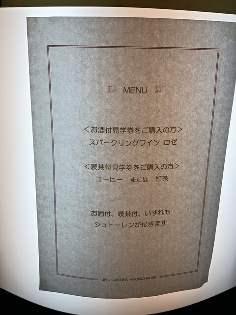 見学のみが500円、喫茶付きは800円、お酒(スパークリングワイン)は1200円で