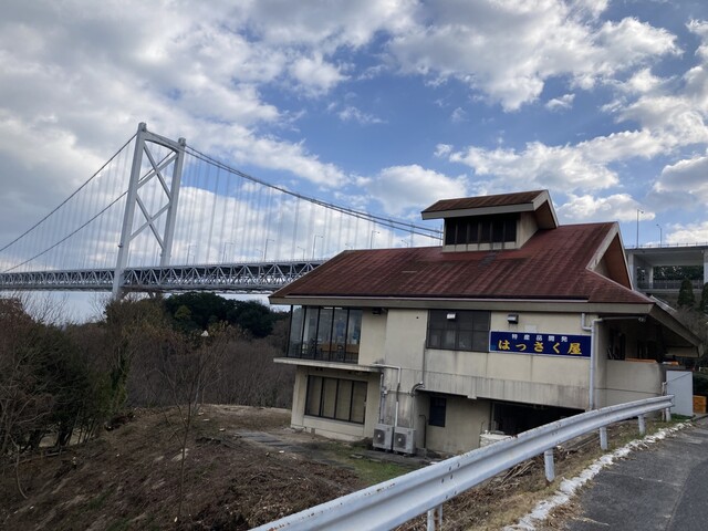 因島大橋を渡ってすぐのバス停から歩いて10分くらいでしょうか。