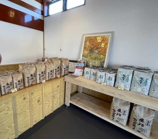 道路側にテイクアウトのおにぎり屋さん、駐車場挟んでお米の販売とイートイン。