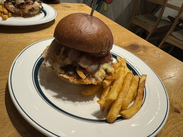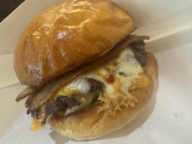 バンズはフワフワモチモチでパティは肉肉しく、チーズがカリカリに焼いてあり、ほかの具材もお互いを引き立てあっている感じでとても美味しいです。