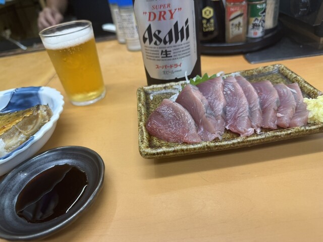 鰹の刺身、鯖の塩焼き、漬物、ジャコおろし