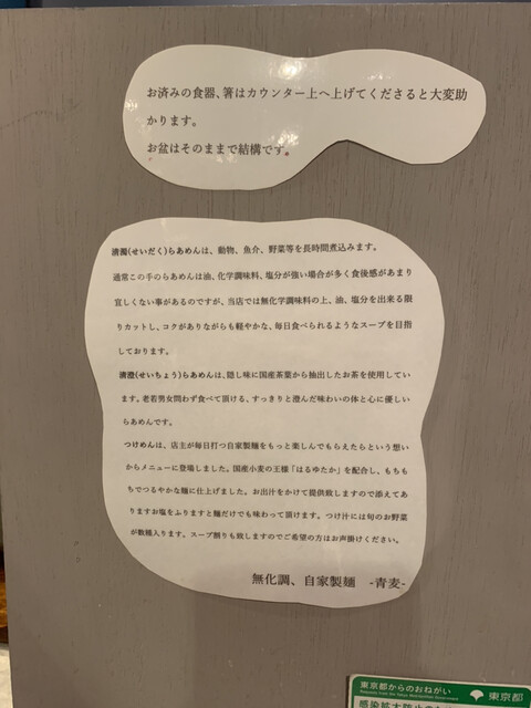 あの名店、HomemadeRamen麦苗 さんの系列店で、青麦とあるように若いスタッフの経験の場としての位置付けらしい