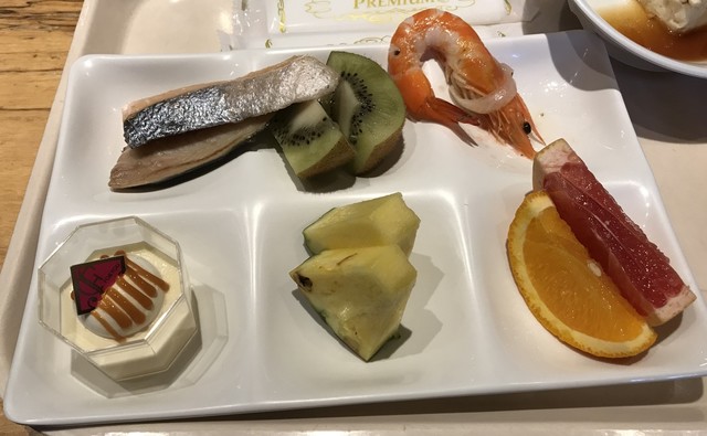 他にもアスパラやマダイの天麩羅、新鮮なフルーツと野菜、なんといってもコーヒーが美味しい。4杯くらい飲みました。1時間半あるのでスイーツとコーヒーを堪能しつつゆっくりくつろげます。