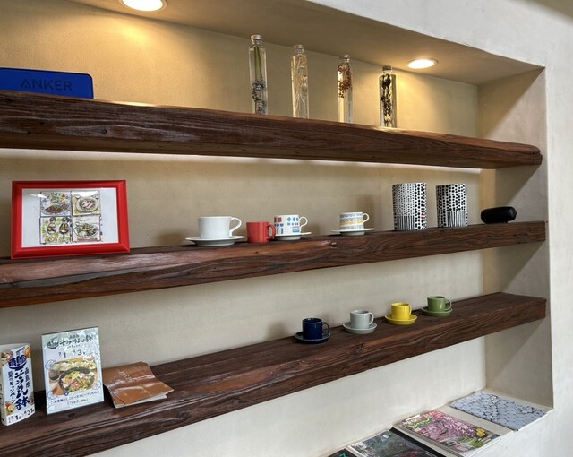 カウンター席を選んでオーダーして待ちます。昼時なのでお客さんが結構いて、もれなく女性でした。女性のココロを鷲掴みにする空間です。お料理を待ってる間もいろんなところを写真撮ってしまいました。おしゃれな食器も売ってあって、欲しかったけれど我慢しました。本当に欲しかった。