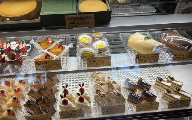 全く期待していなかったカシスのケーキが絶品でした。チョコレートムースと組み合わせてあるのですが、バランスが優れていて、なぜもっと買わなかったのか後悔しました。ショートケーキは安定の裏切らない美味しさ。元祖チーズケーキは、日本にチーズケーキというものが伝わって、一番最初に完成したらこんな感じだったろうか…と想像できる、素朴な味わいです。ちょっとポロポロ崩れやすいので、手に持ってかぶりつきました。