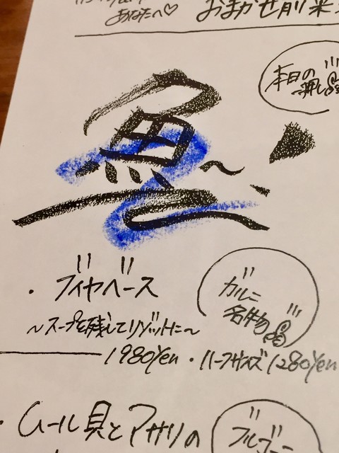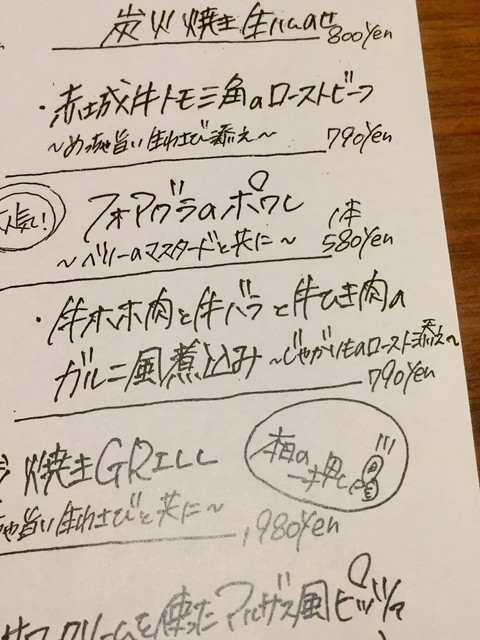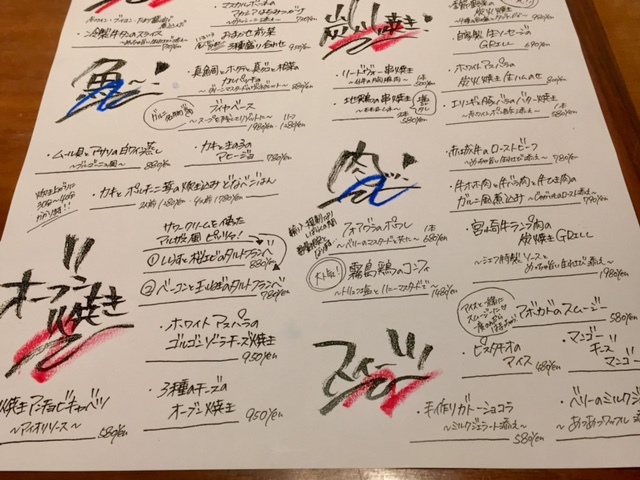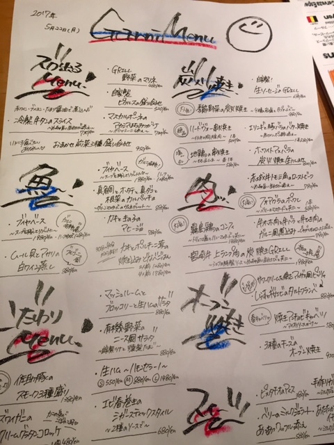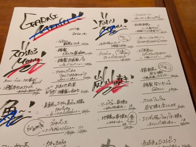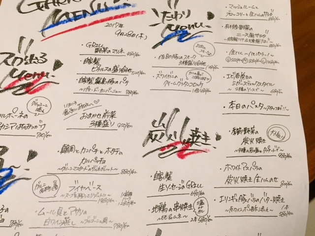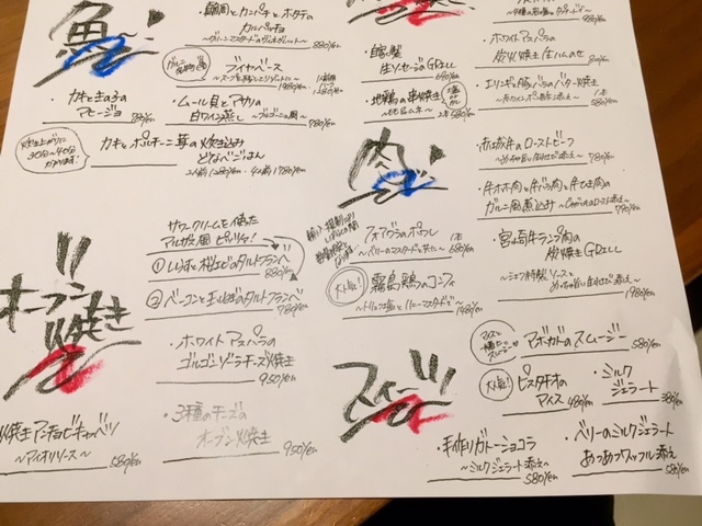 このメニューは各テーブル分を、毎日手書きで作られているそうです。