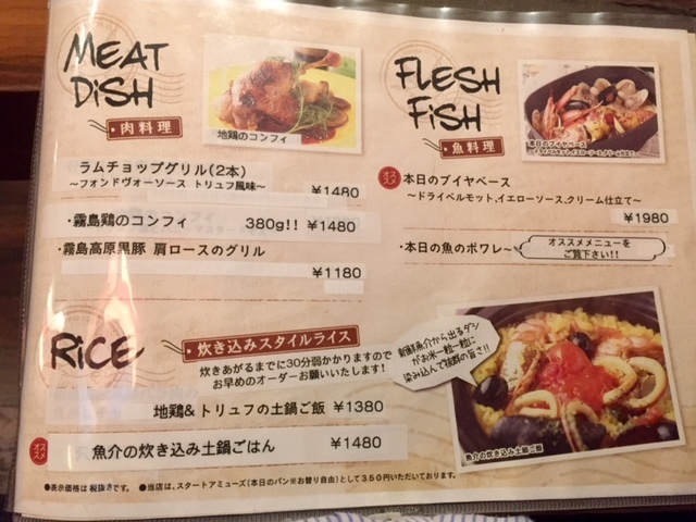 食事は、「ガルニ今日のオススメ」から選択。