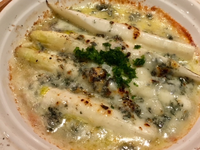 ホワイトアスパラのゴルゴンゾーラチーズ焼き