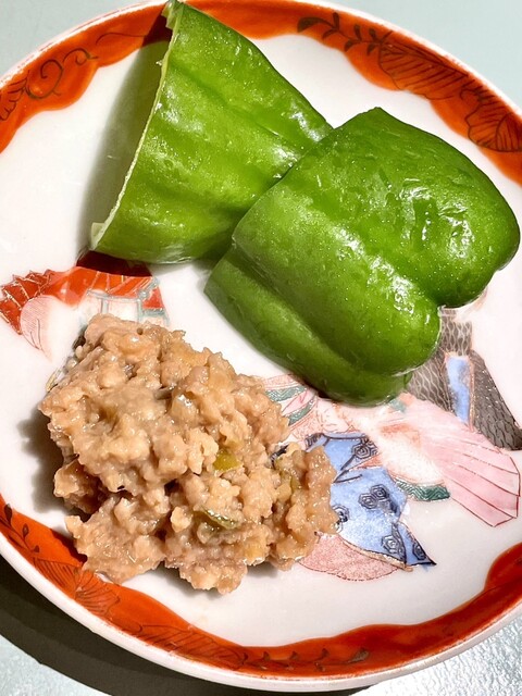 ・山椒を付けて一切れ。うん!これ旨い!全体に振りかけたい。