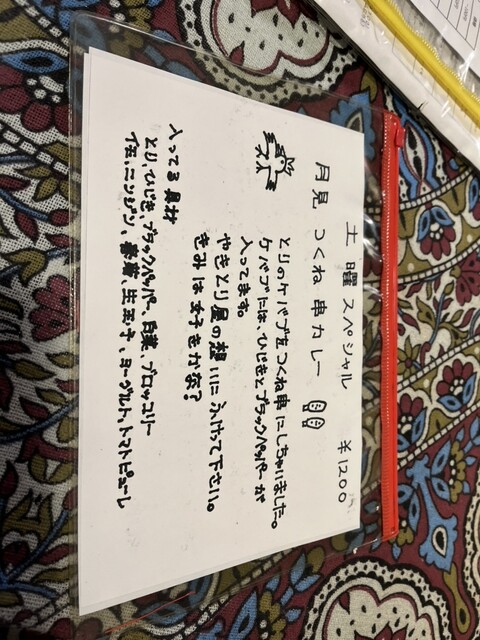 にて、順番を迷いつつ、まずは鶏つくねスープ大。くたくたすぎて味覚が働いていない・・・(号泣)。スープの微細さを受け取りきれず歯軋りしたものの、モス?ほのかに香る独特な華やかな香りと、特製つくねが美味。