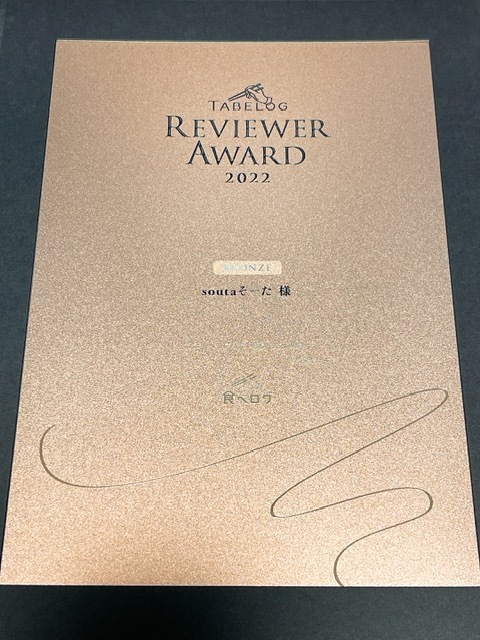2年連続で食べログレビュアーアワードブロンズを受賞しました!