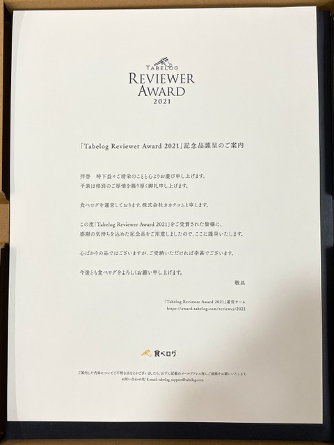 食べログレビュアーアワード2022ブロンズ受賞♪ (2022/03/08)