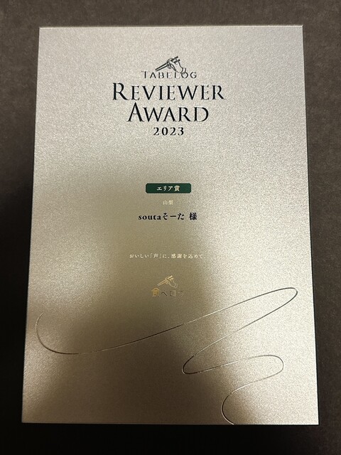 soutaそーた (男性・山梨県) Tabelog Reviewer Award受賞者Tabelog Reviewer Award受賞者 認証済