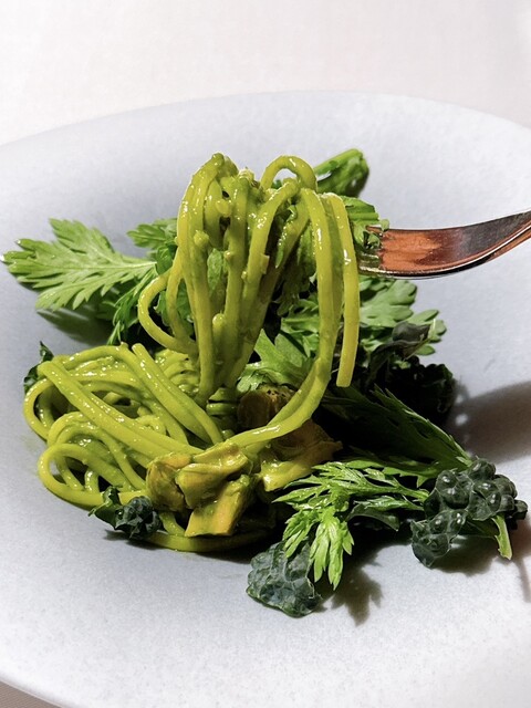 うんめーー。。。オイル系塩系のパスタに青い味わいがしっかりガツンと!
