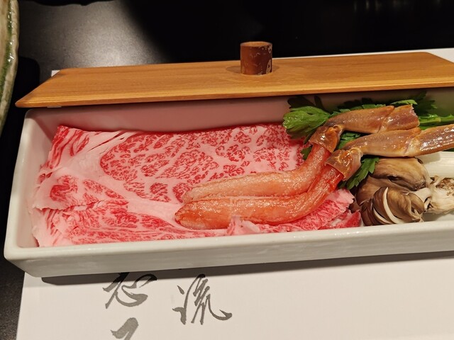 愛知牛とカニしゃぶ とても綺麗なお肉とカニです