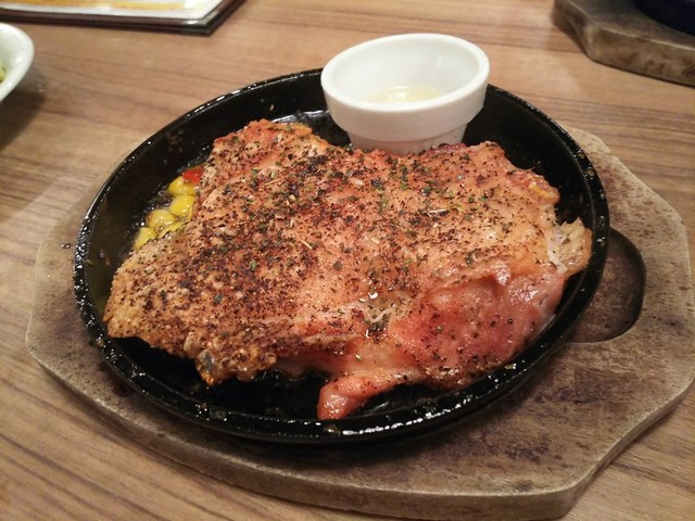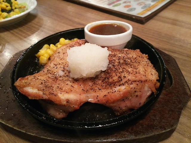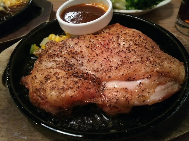 チキンステーキは、皮がパリパリで肉厚ジューシー!ソースが色々選べます。