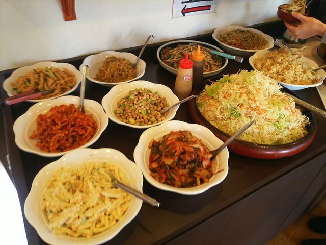 ランチメニューを一品頼むとお総菜バイキングがついてきます。