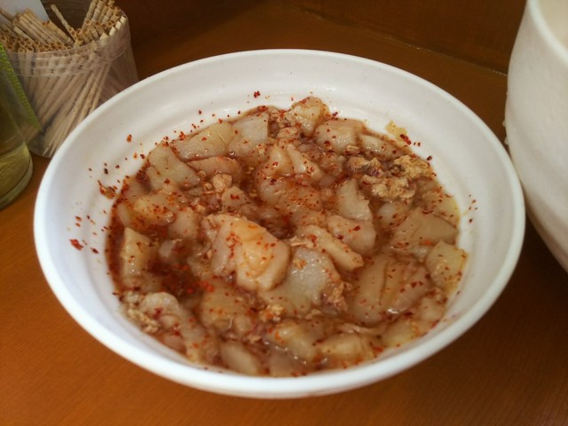 薄味。これもほめ言葉。バラはブタの脂の甘みを、肩(かな?)はブタの旨みをしっかり味わえる。そしてスープに漬け込むと、絶品スープが絡みつき、温まってさらに柔らかに。
