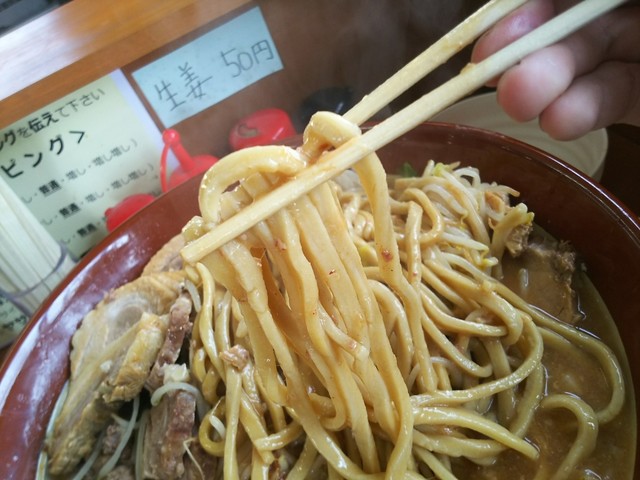 極太麺といえば名古屋の某ラーメン店でも提供されていますが、そことはまた全然違います。