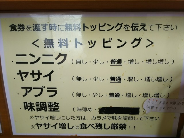 ニンニク普通、ヤサイマシ、アブラマシマシ