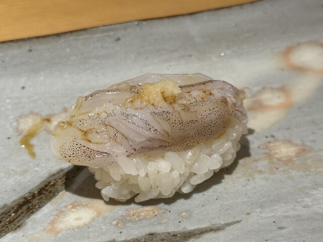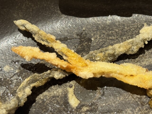 7皿目は、変わり寿司として、揚げたグジの中にシャリが入ったもの。