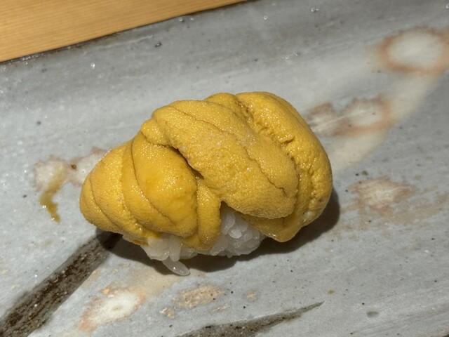 スズキ、マダイ、ヘダイ、レンコダイ、ヒラソウダカツオ、ケンサキイカ、キシエビ、蒸しアワビの肝寿司、赤ウニ2種。