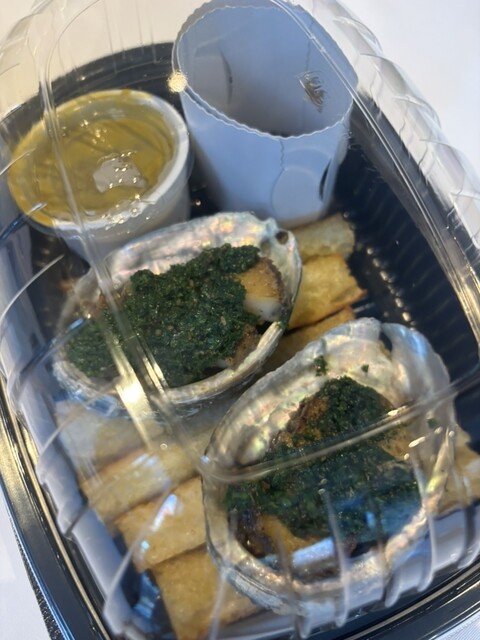 お店のスタッフさんのサービスも良くて、お留守番の婿さん用にと鮑ソテー、デザートのテイクアウトをすぐに用意してくださいました。