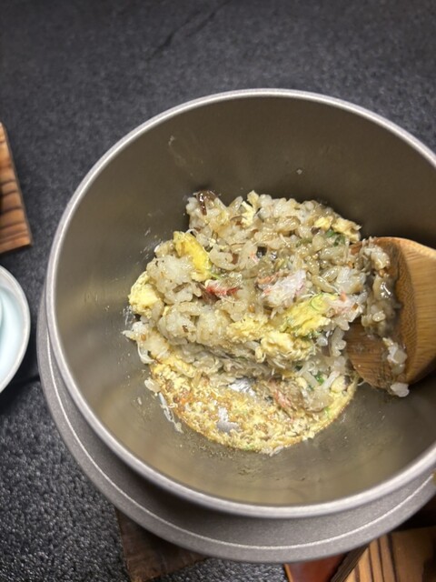 蟹味噌入り蟹炒めご飯は、刻み昆布と卵を混ぜて食べます、