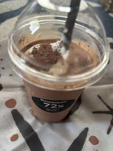梅雨の合間の晴れで、暑くなりましたのでショコラショーもいただきます。甘さ控えめでショコラの美味しさがしっかりしてます。持ち帰るのに、袋やドリンクホルダーなと気遣いくださいまして感謝です。