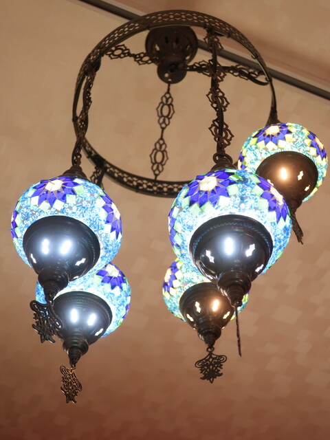 天井にトルコランプずらっ、出窓にシーシャ