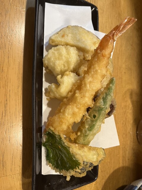 まずは、天ぷらほろ酔いセットなるものを注文。アルコール1杯に天ぷら盛り合わせ、好きなおでん3品までついて1180円!天ぷらの盛り合わせも写真の通り充実。おでんも味つけ・具材ともにしっかり。コスパすげえわ。